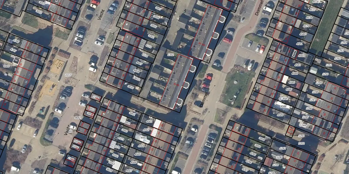 Het perceel waarop Dommel 45 staat heeft een oppervlakte van 1802 m². Dit is een zeer groot perceel. De perceeloppervlakte wordt geregistreerd door het Kadaster. Gedetailleerde informatie over de maten van dit perceel kunt u vinden in het rapport Kadastrale kaart met maatvoering van Dommel 45.