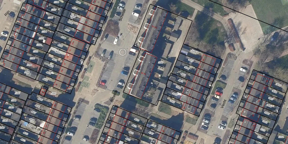Het perceel waarop Schelde 62 staat heeft een oppervlakte van 1837 m². Dit is een zeer groot perceel. De perceeloppervlakte wordt geregistreerd door het Kadaster. Gedetailleerde informatie over de maten van dit perceel kunt u vinden in het rapport Kadastrale kaart met maatvoering van Schelde 62.