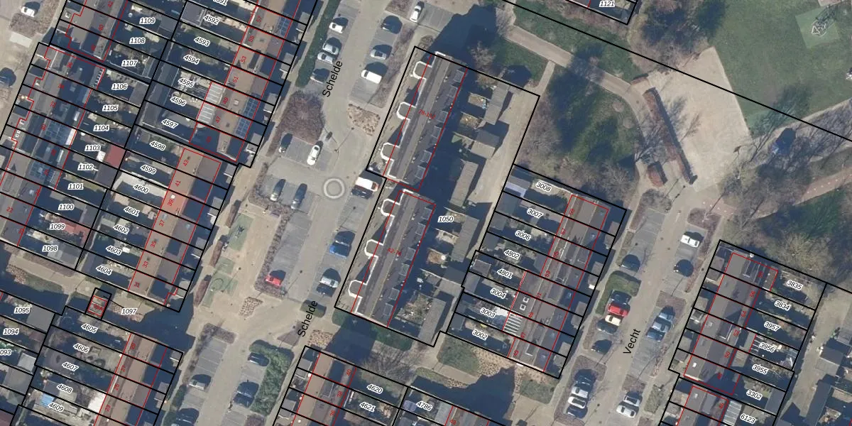 Het perceel waarop Schelde 76 staat heeft een oppervlakte van 1837 m². Dit is een zeer groot perceel. De perceeloppervlakte wordt geregistreerd door het Kadaster. Gedetailleerde informatie over de maten van dit perceel kunt u vinden in het rapport Kadastrale kaart met maatvoering van Schelde 76.