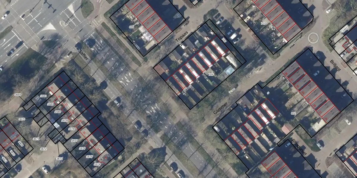 Het perceel waarop Topaas 2 staat heeft een oppervlakte van 1223 m². Dit is een zeer groot perceel. De perceeloppervlakte wordt geregistreerd door het Kadaster. Gedetailleerde informatie over de maten van dit perceel kunt u vinden in het rapport Kadastrale kaart met maatvoering van Topaas 2.