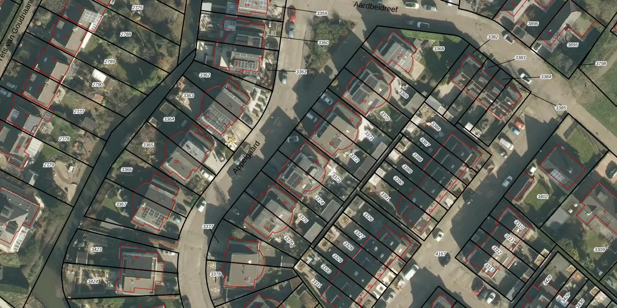 Het perceel waarop Appelgaard 35 staat heeft een oppervlakte van 239 m². Dit is een middelgroot perceel. De perceeloppervlakte wordt geregistreerd door het Kadaster. Gedetailleerde informatie over de maten van dit perceel kunt u vinden in het rapport Kadastrale kaart met maatvoering van Appelgaard 35.