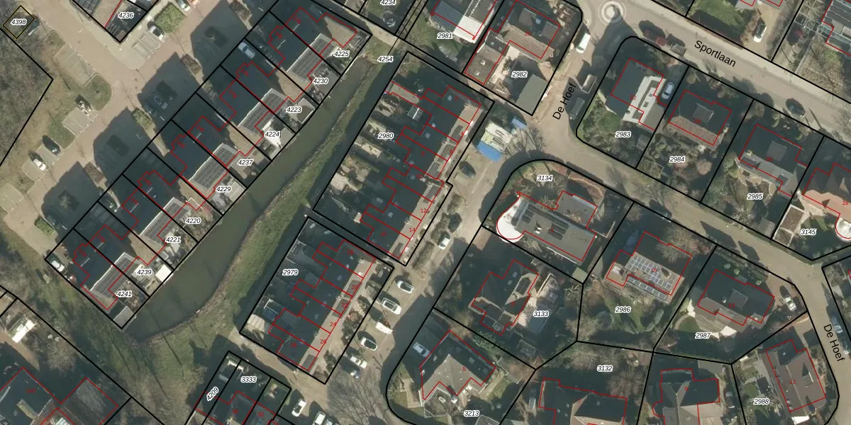 Het perceel waarop De Hoef 12 staat heeft een oppervlakte van 1066 m². Dit is een zeer groot perceel. De perceeloppervlakte wordt geregistreerd door het Kadaster. Gedetailleerde informatie over de maten van dit perceel kunt u vinden in het rapport Kadastrale kaart met maatvoering van De Hoef 12.
