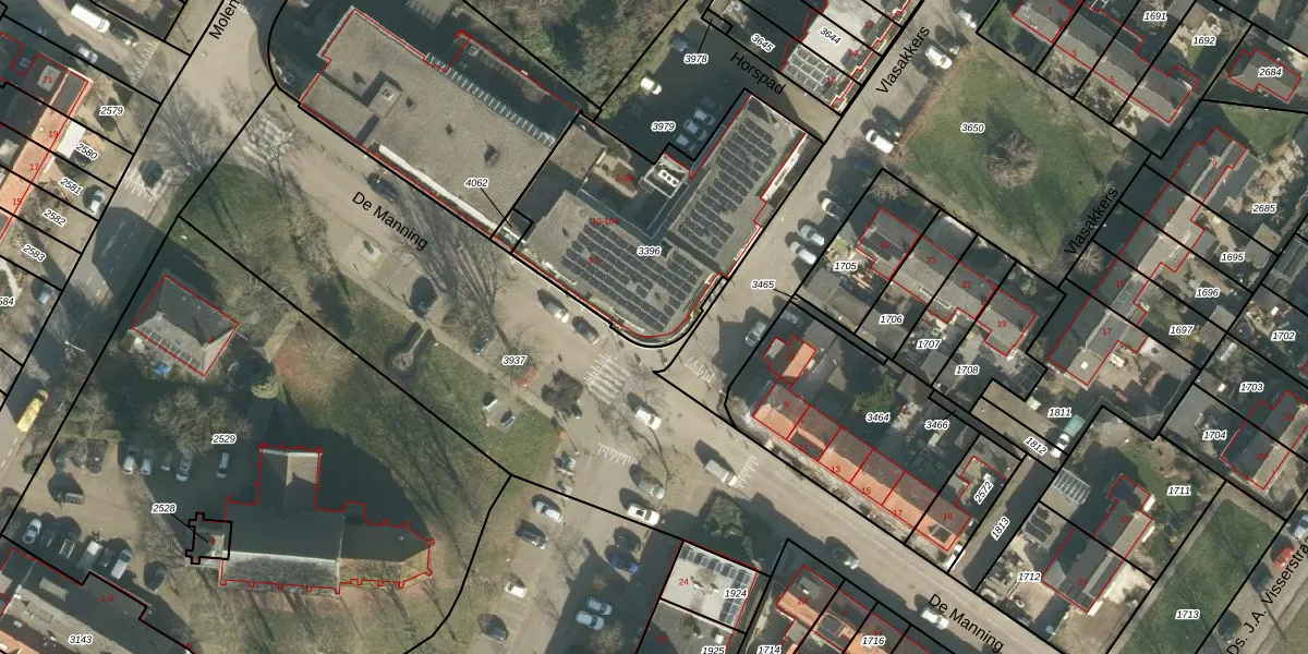 Het perceel waarop De Manning 7 staat heeft een oppervlakte van 1030 m². Dit is een zeer groot perceel. De perceeloppervlakte wordt geregistreerd door het Kadaster. Gedetailleerde informatie over de maten van dit perceel kunt u vinden in het rapport Kadastrale kaart met maatvoering van De Manning 7.