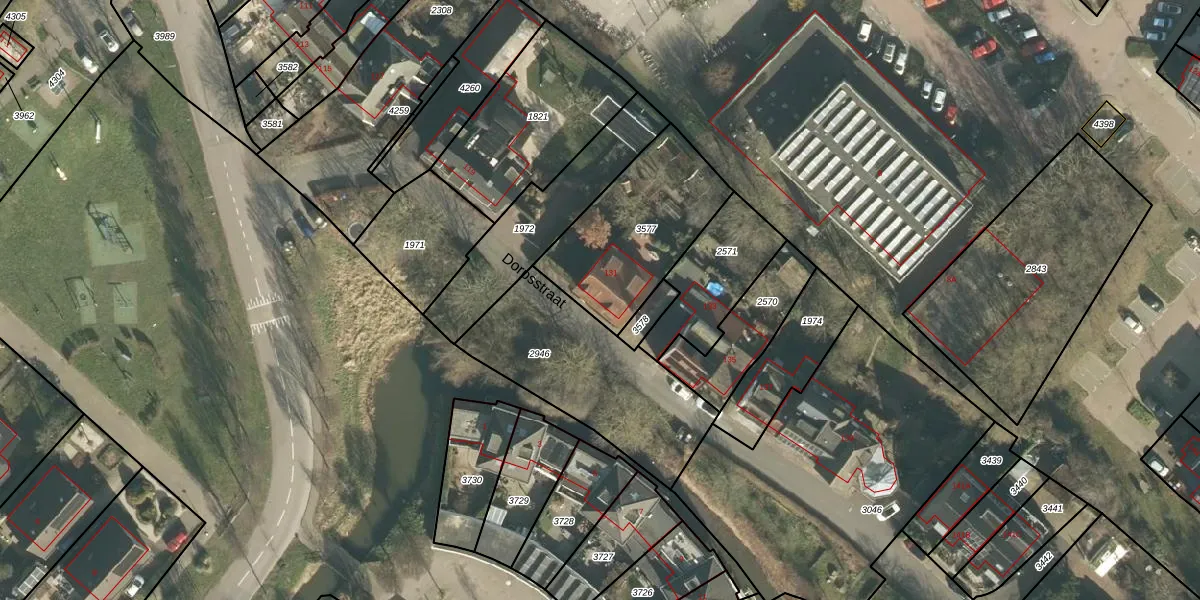 Het perceel waarop Dorpsstraat 131 staat heeft een oppervlakte van 549 m². Dit is een groot perceel. De perceeloppervlakte wordt geregistreerd door het Kadaster. Gedetailleerde informatie over de maten van dit perceel kunt u vinden in het rapport Kadastrale kaart met maatvoering van Dorpsstraat 131.