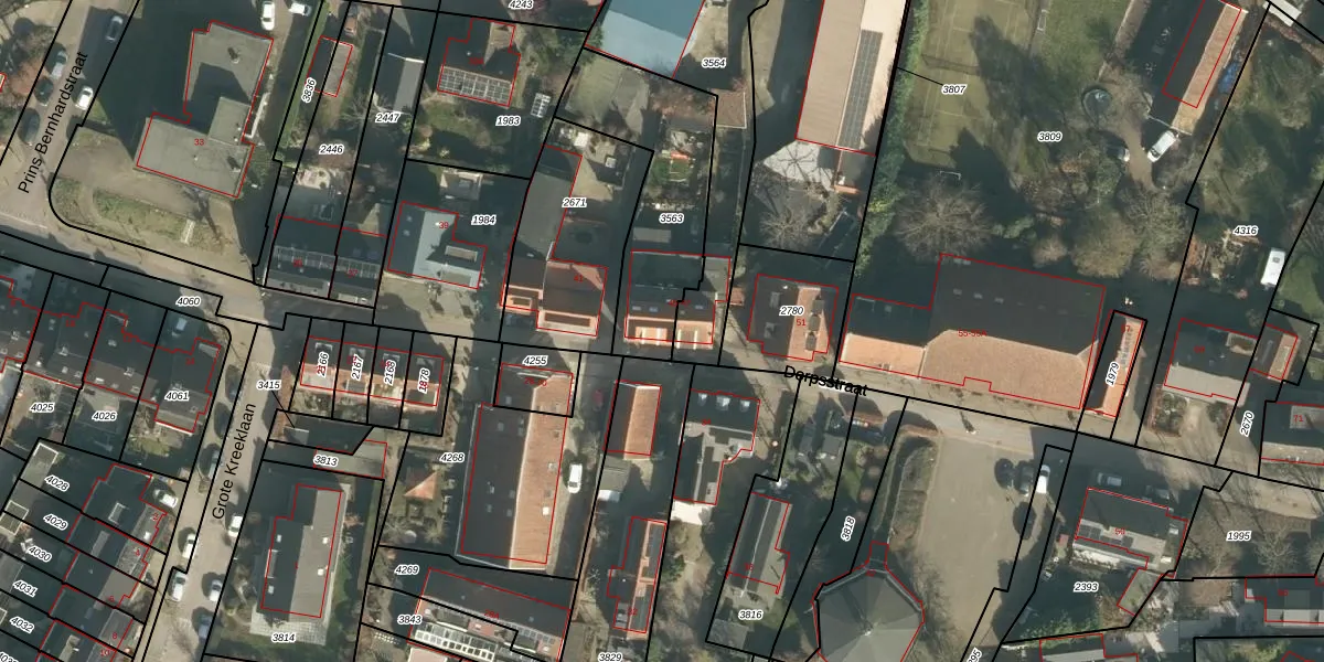 Het perceel waarop Dorpsstraat 45 staat heeft een oppervlakte van 574 m². Dit is een groot perceel. De perceeloppervlakte wordt geregistreerd door het Kadaster. Gedetailleerde informatie over de maten van dit perceel kunt u vinden in het rapport Kadastrale kaart met maatvoering van Dorpsstraat 45.
