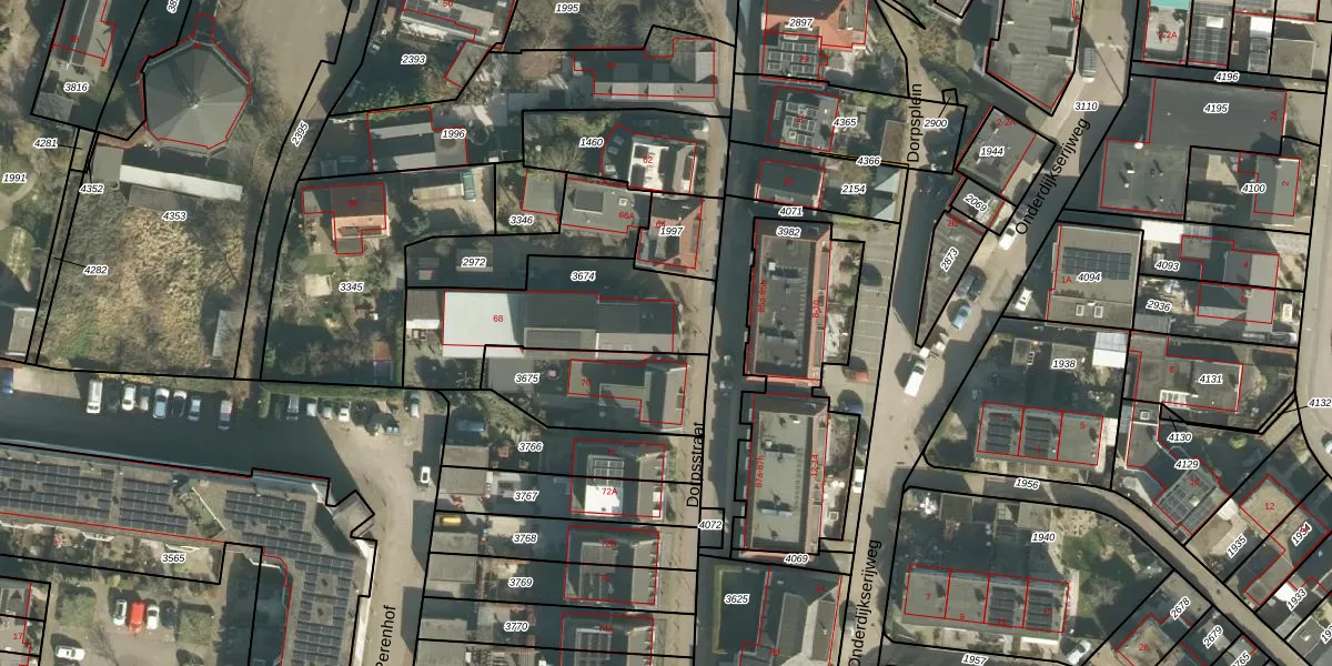 Gebruik de zoekbalk of klik op een perceel voor informatie over de adressen binnen dit perceel.