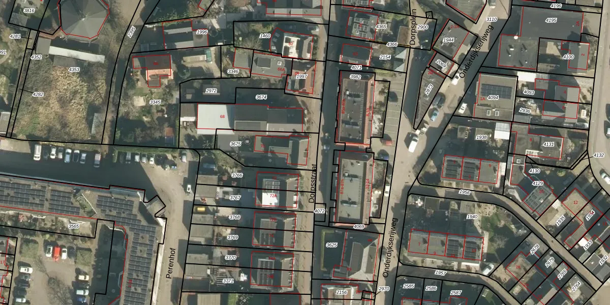 Het perceel waarop Dorpsstraat 70 staat heeft een oppervlakte van 369 m². Dit is een groot perceel. De perceeloppervlakte wordt geregistreerd door het Kadaster. Gedetailleerde informatie over de maten van dit perceel kunt u vinden in het rapport Kadastrale kaart met maatvoering van Dorpsstraat 70.