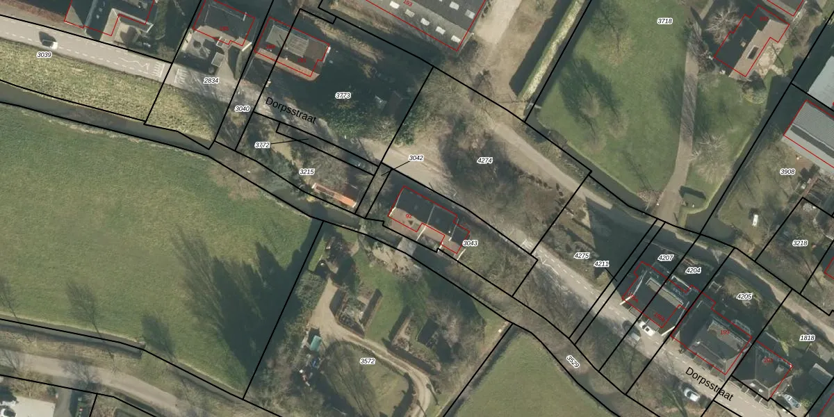 Het perceel waarop Dorpsstraat 92 staat heeft een oppervlakte van 460 m². Dit is een groot perceel. De perceeloppervlakte wordt geregistreerd door het Kadaster. Gedetailleerde informatie over de maten van dit perceel kunt u vinden in het rapport Kadastrale kaart met maatvoering van Dorpsstraat 92.