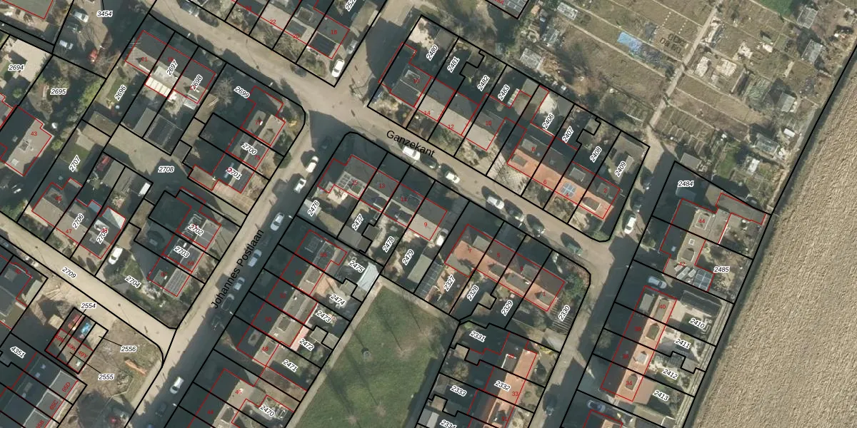 Het perceel waarop Ganzekant 9 staat heeft een oppervlakte van 236 m². Dit is een middelgroot perceel. De perceeloppervlakte wordt geregistreerd door het Kadaster. Gedetailleerde informatie over de maten van dit perceel kunt u vinden in het rapport Kadastrale kaart met maatvoering van Ganzekant 9.