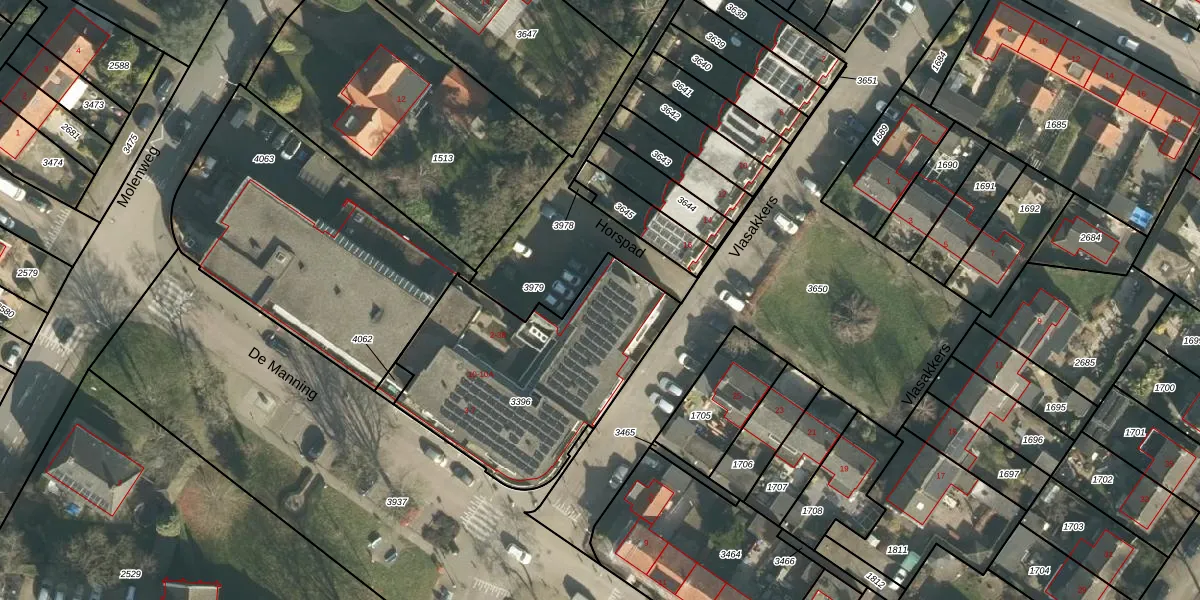 Het perceel waarop Horspad 4 staat heeft een oppervlakte van 1030 m². Dit is een zeer groot perceel. De perceeloppervlakte wordt geregistreerd door het Kadaster. Gedetailleerde informatie over de maten van dit perceel kunt u vinden in het rapport Kadastrale kaart met maatvoering van Horspad 4.
