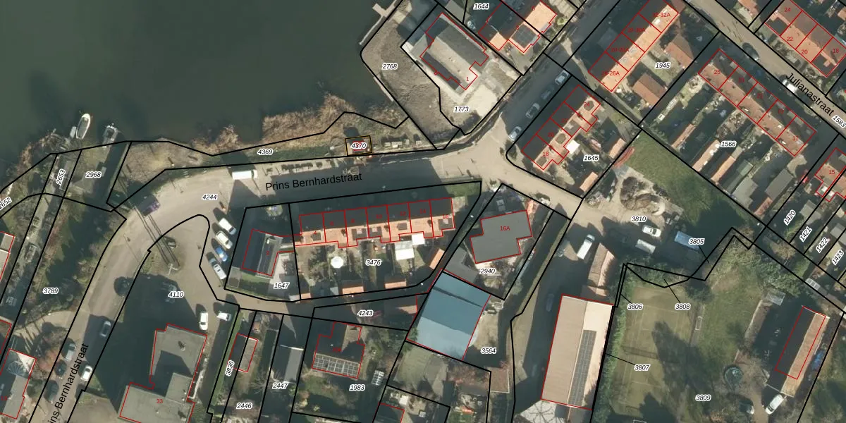 Prins Bernhardstraat 14 is gelegen op kadastraal perceel HJD00A3476. Deze kadastrale aanduiding is uniek en wordt gebruikt door het Kadaster om eigendomsrechten en andere zakelijke rechten vast te leggen. Het perceel maakt onderdeel uit van de kadastrale gemeente Heerjansdam.