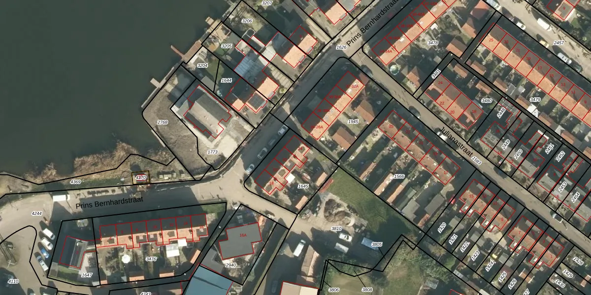 Prins Bernhardstraat 24 is gelegen op kadastraal perceel HJD00A1645. Deze kadastrale aanduiding is uniek en wordt gebruikt door het Kadaster om eigendomsrechten en andere zakelijke rechten vast te leggen. Het perceel maakt onderdeel uit van de kadastrale gemeente Heerjansdam.