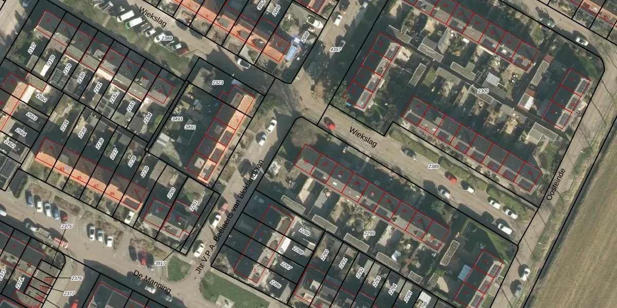 Wiekslag 18 is gelegen op kadastraal perceel HJD00A2299. Deze kadastrale aanduiding is uniek en wordt gebruikt door het Kadaster om eigendomsrechten en andere zakelijke rechten vast te leggen. Het perceel maakt onderdeel uit van de kadastrale gemeente Heerjansdam.