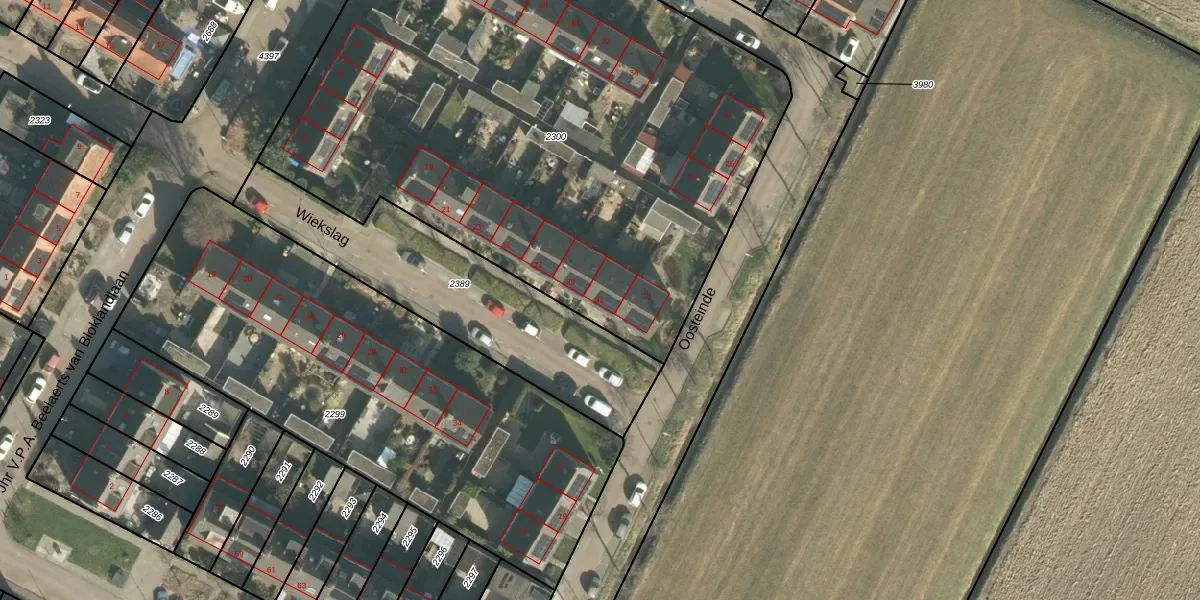 Het perceel waarop Wiekslag 31 staat heeft een oppervlakte van 3938 m². Dit is een zeer groot perceel. De perceeloppervlakte wordt geregistreerd door het Kadaster. Gedetailleerde informatie over de maten van dit perceel kunt u vinden in het rapport Kadastrale kaart met maatvoering van Wiekslag 31.