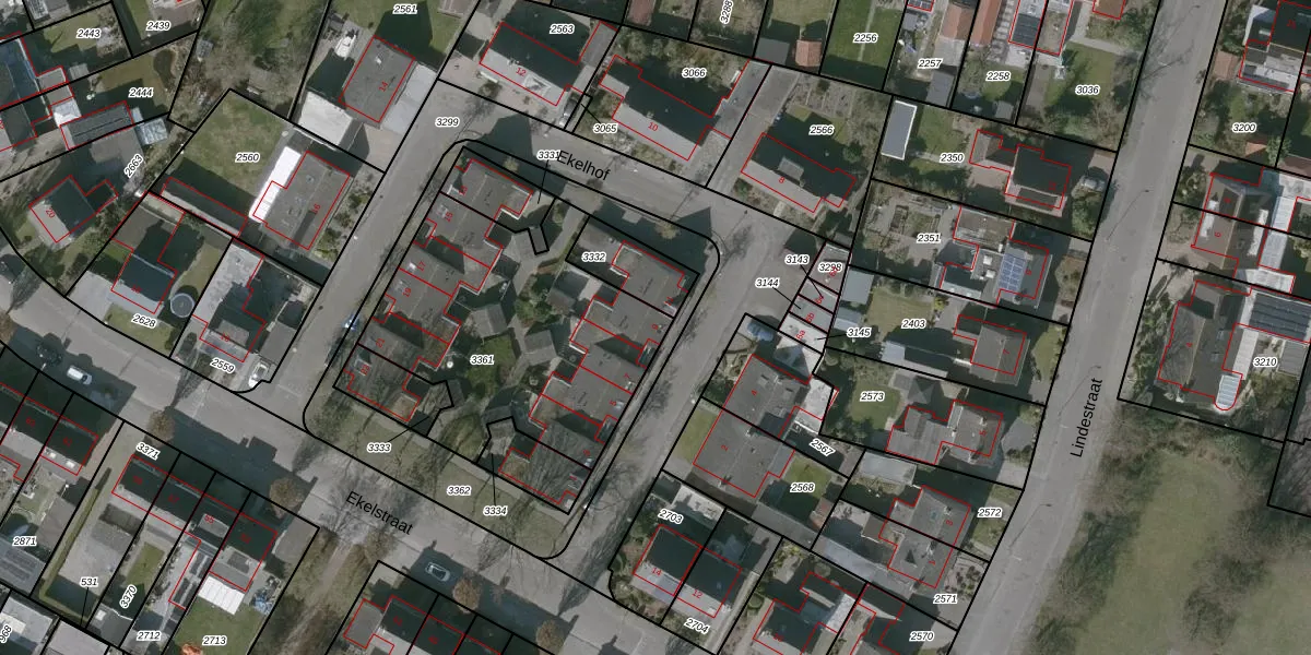 Het perceel waarop Ekelhof 9 staat heeft een oppervlakte van 1175 m². Dit is een zeer groot perceel. De perceeloppervlakte wordt geregistreerd door het Kadaster. Gedetailleerde informatie over de maten van dit perceel kunt u vinden in het rapport Kadastrale kaart met maatvoering van Ekelhof 9.