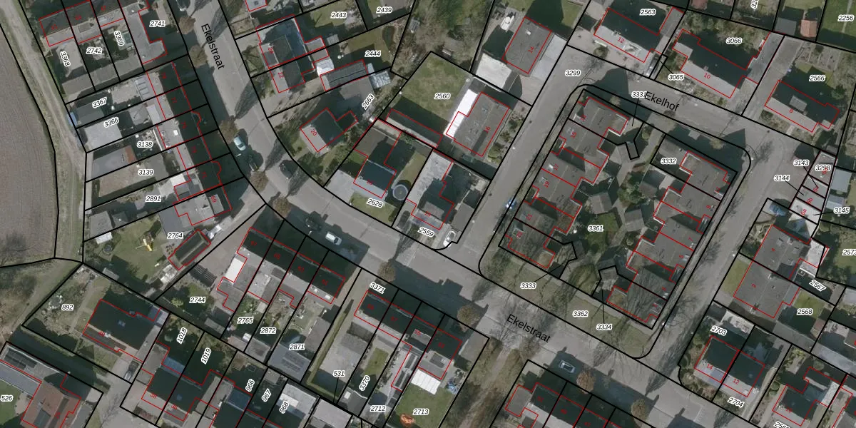 Ekelstraat 16 is gelegen op kadastraal perceel WOU00K2559. Deze kadastrale aanduiding is uniek en wordt gebruikt door het Kadaster om eigendomsrechten en andere zakelijke rechten vast te leggen. Het perceel maakt onderdeel uit van de kadastrale gemeente Wouw.