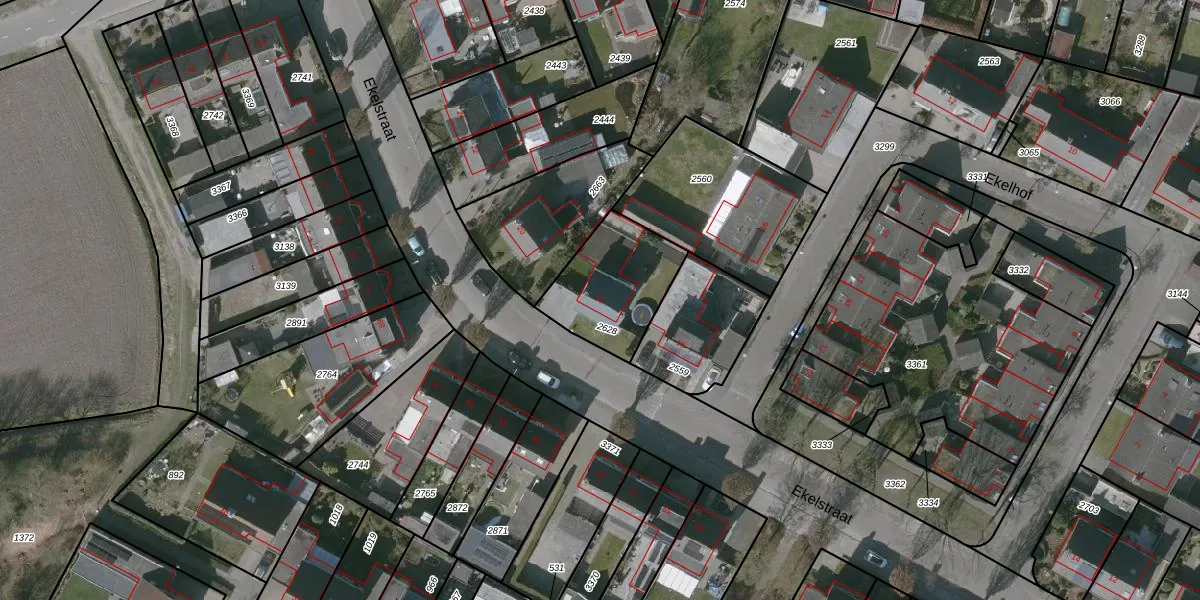 Gebruik de zoekbalk of klik op een perceel voor informatie over de adressen binnen dit perceel.