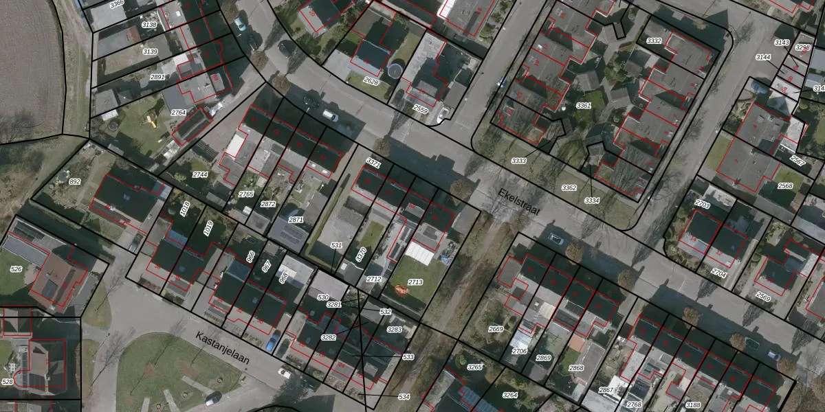 Het perceel waarop Ekelstraat 55 staat heeft een oppervlakte van 192 m². Dit is een middelgroot perceel. De perceeloppervlakte wordt geregistreerd door het Kadaster. Gedetailleerde informatie over de maten van dit perceel kunt u vinden in het rapport Kadastrale kaart met maatvoering van Ekelstraat 55.
