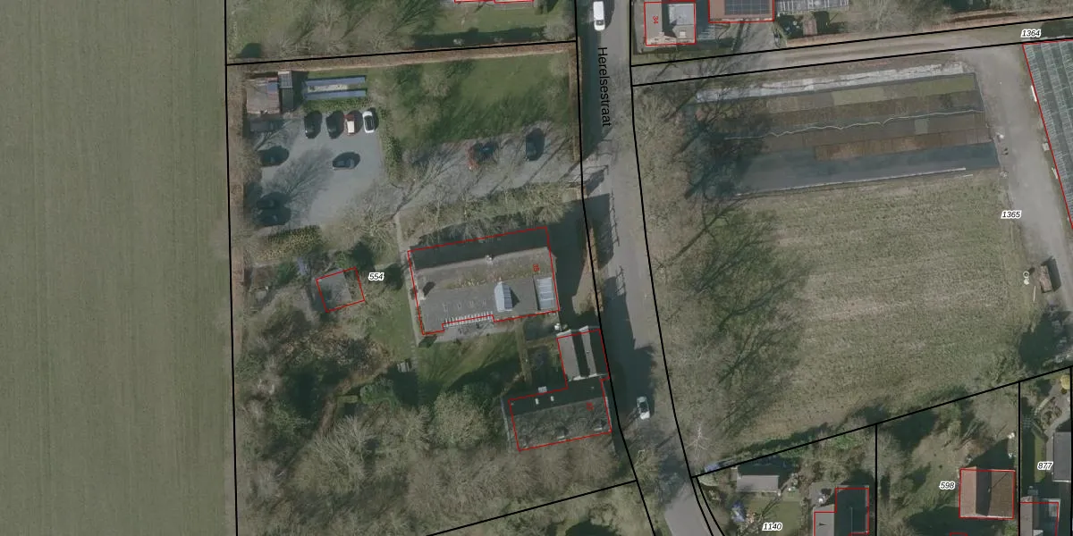 Het perceel waarop Herelsestraat 35 staat heeft een oppervlakte van 6330 m². Dit is een zeer groot perceel. De perceeloppervlakte wordt geregistreerd door het Kadaster. Gedetailleerde informatie over de maten van dit perceel kunt u vinden in het rapport Kadastrale kaart met maatvoering van Herelsestraat 35.