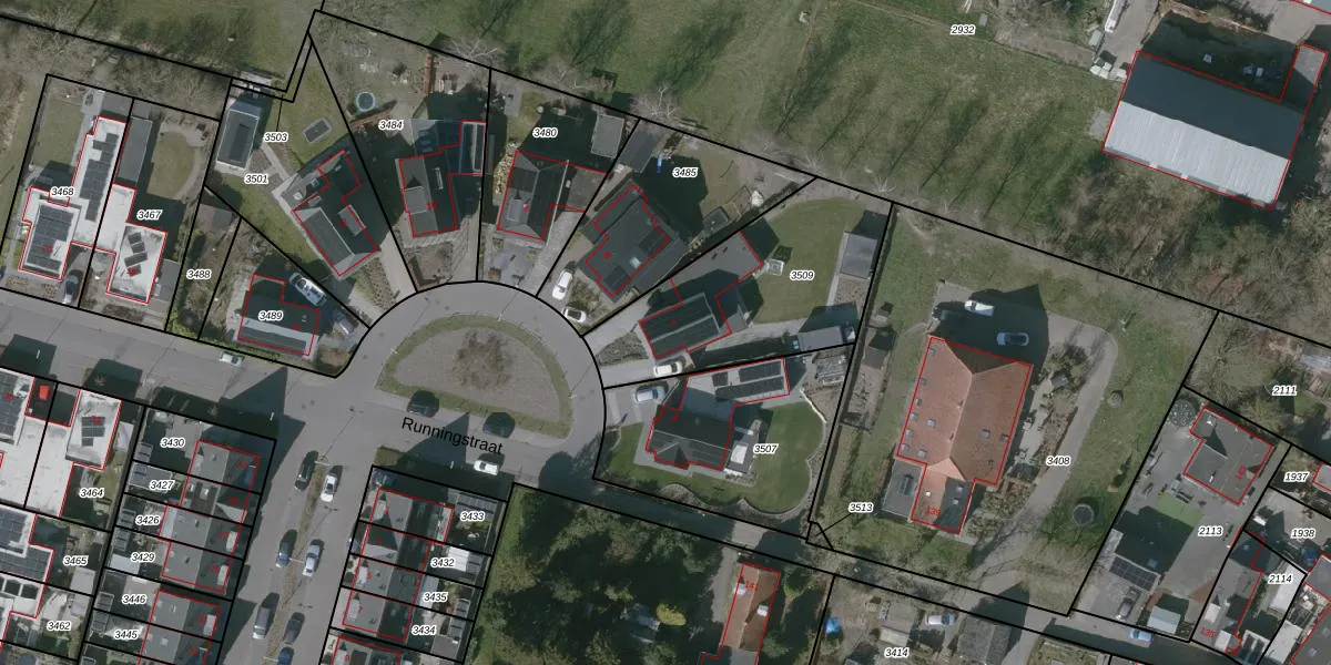 Runningstraat 4 is gelegen op kadastraal perceel WOU00K3509. Deze kadastrale aanduiding is uniek en wordt gebruikt door het Kadaster om eigendomsrechten en andere zakelijke rechten vast te leggen. Het perceel maakt onderdeel uit van de kadastrale gemeente Wouw.