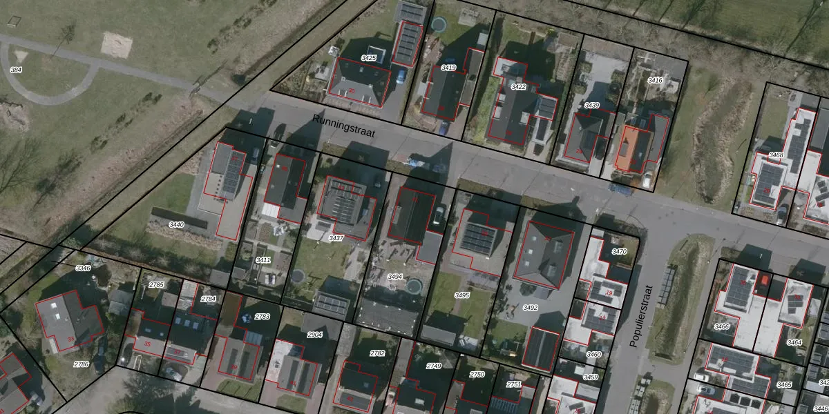 Runningstraat 41 is gelegen op kadastraal perceel WOU00K3494. Deze kadastrale aanduiding is uniek en wordt gebruikt door het Kadaster om eigendomsrechten en andere zakelijke rechten vast te leggen. Het perceel maakt onderdeel uit van de kadastrale gemeente Wouw.