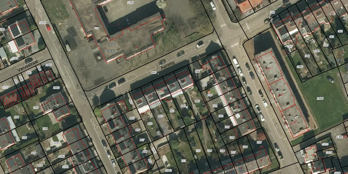 Gebruik de zoekbalk of klik op een perceel voor informatie over de adressen binnen dit perceel.