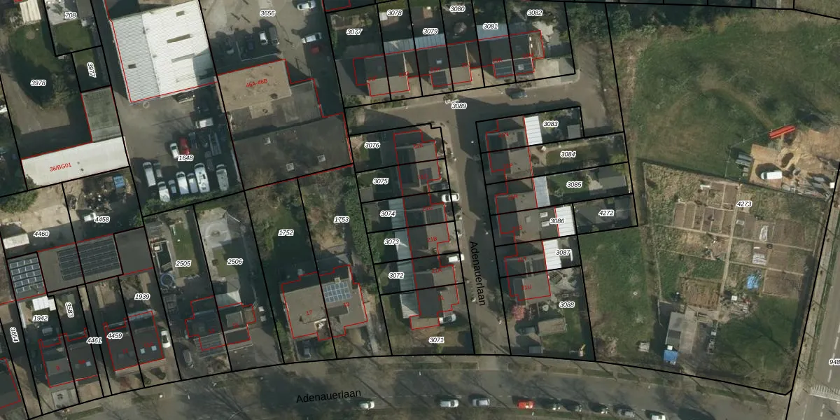 Het perceel waarop Adenauerlaan 21-C staat heeft een oppervlakte van 156 m². Dit is een middelgroot perceel. De perceeloppervlakte wordt geregistreerd door het Kadaster. Gedetailleerde informatie over de maten van dit perceel kunt u vinden in het rapport Kadastrale kaart met maatvoering van Adenauerlaan 21-C.