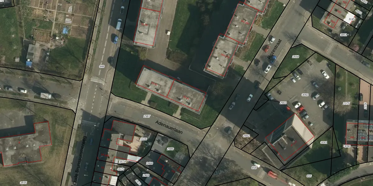 Het perceel waarop Adenauerlaan 35 staat heeft een oppervlakte van 9020 m². Dit is een zeer groot perceel. De perceeloppervlakte wordt geregistreerd door het Kadaster. Gedetailleerde informatie over de maten van dit perceel kunt u vinden in het rapport Kadastrale kaart met maatvoering van Adenauerlaan 35.
