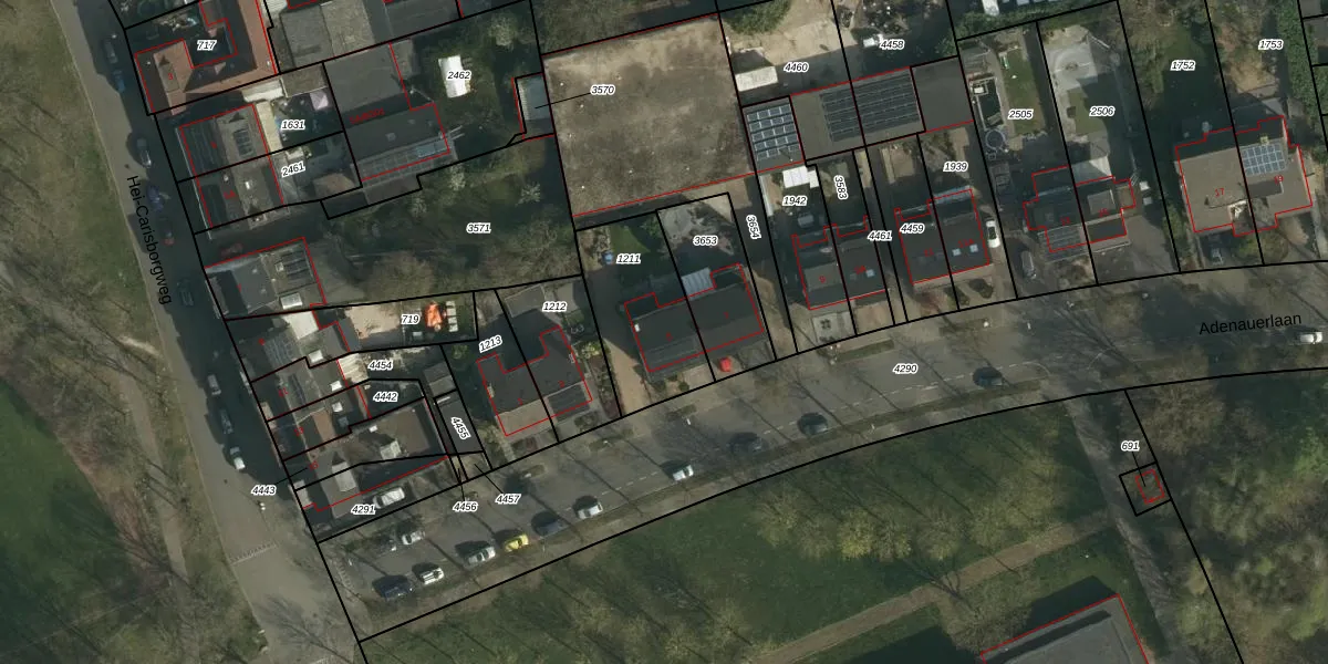 Adenauerlaan 5 is gelegen op kadastraal perceel HLN01O1211. Deze kadastrale aanduiding is uniek en wordt gebruikt door het Kadaster om eigendomsrechten en andere zakelijke rechten vast te leggen. Het perceel maakt onderdeel uit van de kadastrale gemeente Heerlen.