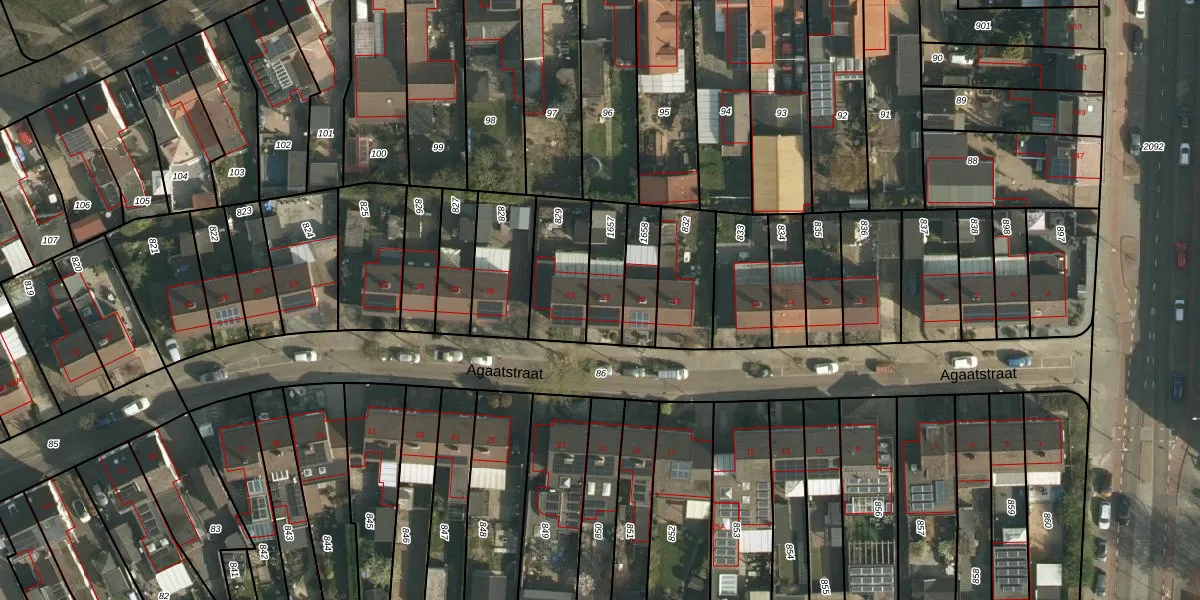 Het perceel waarop Agaatstraat 22 staat heeft een oppervlakte van 142 m². Dit is een middelgroot perceel. De perceeloppervlakte wordt geregistreerd door het Kadaster. Gedetailleerde informatie over de maten van dit perceel kunt u vinden in het rapport Kadastrale kaart met maatvoering van Agaatstraat 22.