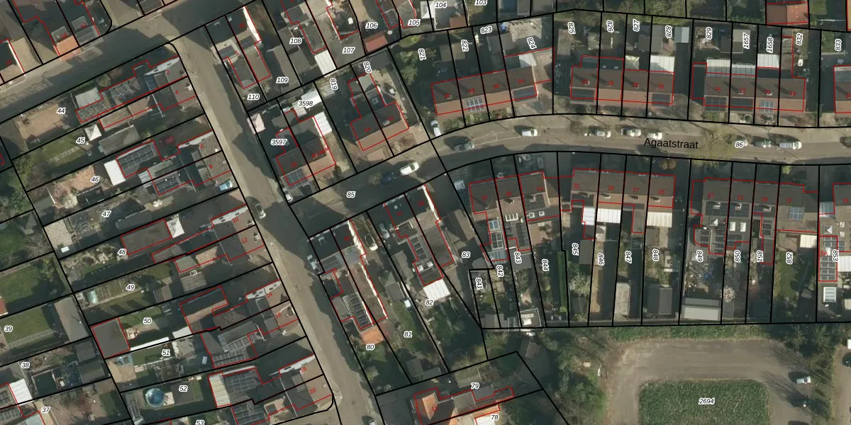 Agaatstraat 39 is gelegen op kadastraal perceel HLN01R83. Deze kadastrale aanduiding is uniek en wordt gebruikt door het Kadaster om eigendomsrechten en andere zakelijke rechten vast te leggen. Het perceel maakt onderdeel uit van de kadastrale gemeente Heerlen.