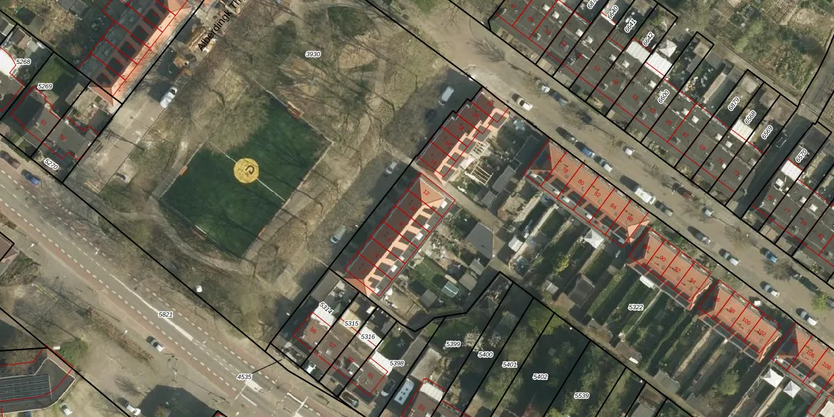 Het perceel waarop Alberdingk Thijmplein 10 staat heeft een oppervlakte van 5976 m². Dit is een zeer groot perceel. De perceeloppervlakte wordt geregistreerd door het Kadaster. Gedetailleerde informatie over de maten van dit perceel kunt u vinden in het rapport Kadastrale kaart met maatvoering van Alberdingk Thijmplein 10.