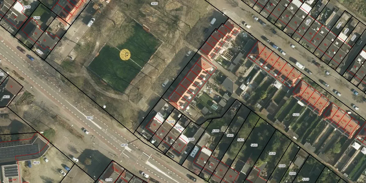 Het perceel waarop Alberdingk Thijmplein 4 staat heeft een oppervlakte van 5976 m². Dit is een zeer groot perceel. De perceeloppervlakte wordt geregistreerd door het Kadaster. Gedetailleerde informatie over de maten van dit perceel kunt u vinden in het rapport Kadastrale kaart met maatvoering van Alberdingk Thijmplein 4.