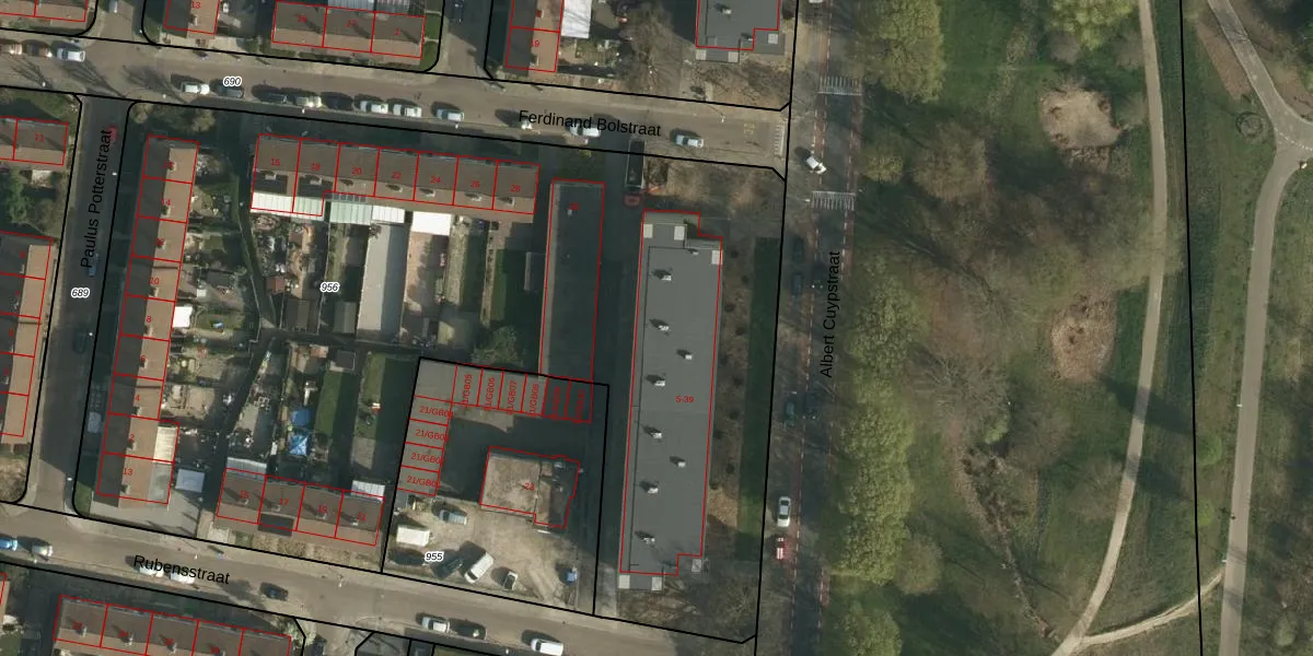 Albert Cuypstraat 5-GB77 is gelegen op kadastraal perceel HLN01M956. Deze kadastrale aanduiding is uniek en wordt gebruikt door het Kadaster om eigendomsrechten en andere zakelijke rechten vast te leggen. Het perceel maakt onderdeel uit van de kadastrale gemeente Heerlen.