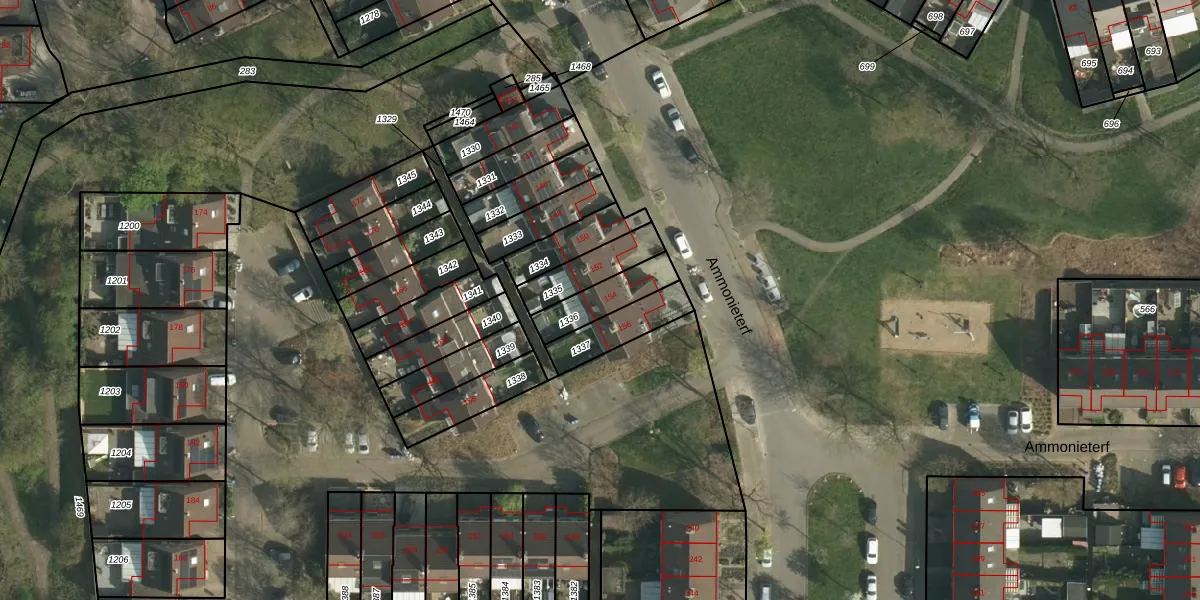Het perceel waarop Ammonieterf 154 staat heeft een oppervlakte van 136 m². Dit is een middelgroot perceel. De perceeloppervlakte wordt geregistreerd door het Kadaster. Gedetailleerde informatie over de maten van dit perceel kunt u vinden in het rapport Kadastrale kaart met maatvoering van Ammonieterf 154.