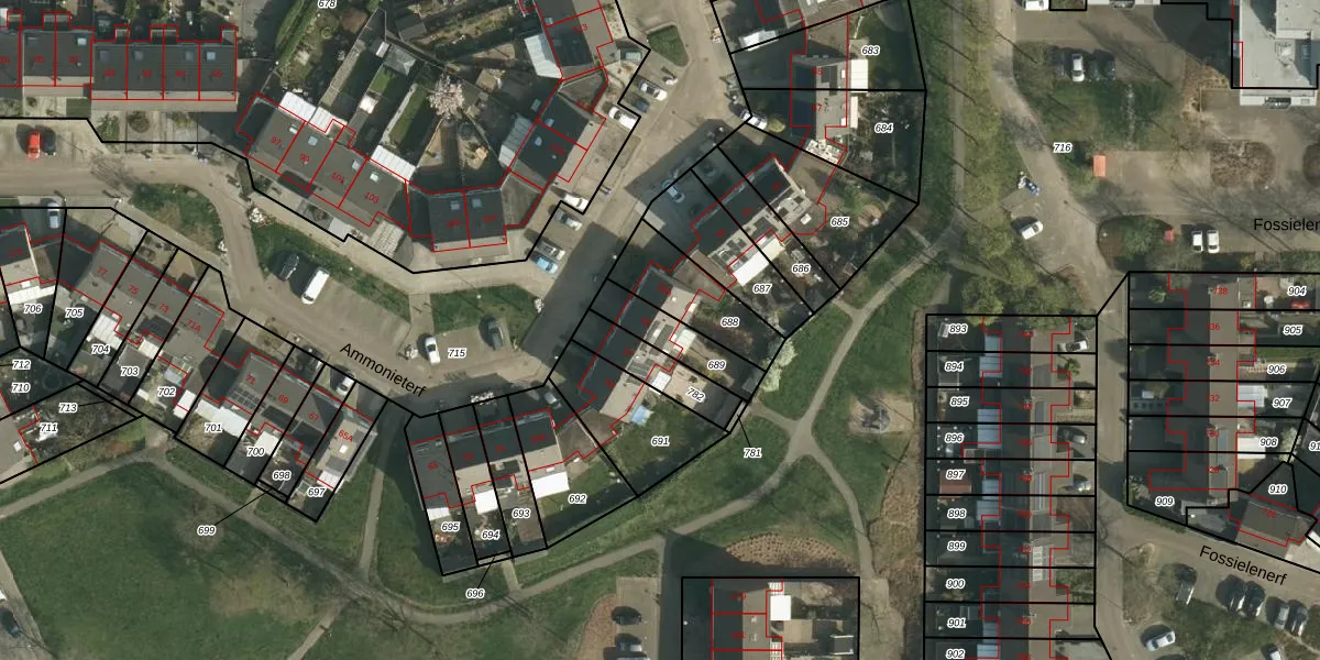 Het perceel waarop Ammonieterf 55 staat heeft een oppervlakte van 150 m². Dit is een middelgroot perceel. De perceeloppervlakte wordt geregistreerd door het Kadaster. Gedetailleerde informatie over de maten van dit perceel kunt u vinden in het rapport Kadastrale kaart met maatvoering van Ammonieterf 55.