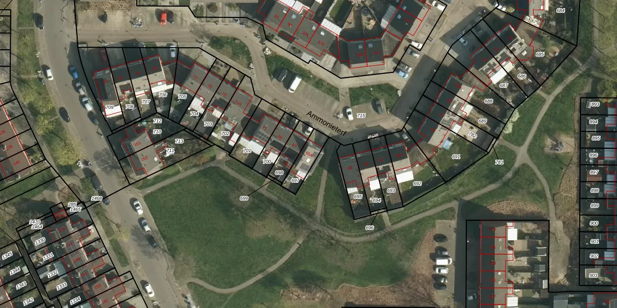 Het perceel waarop Ammonieterf 65-A staat heeft een oppervlakte van 119 m². Dit is een middelgroot perceel. De perceeloppervlakte wordt geregistreerd door het Kadaster. Gedetailleerde informatie over de maten van dit perceel kunt u vinden in het rapport Kadastrale kaart met maatvoering van Ammonieterf 65-A.