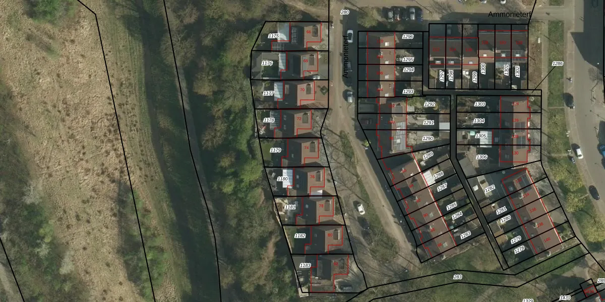 Het perceel waarop Ammonieterf 74 staat heeft een oppervlakte van 203 m². Dit is een middelgroot perceel. De perceeloppervlakte wordt geregistreerd door het Kadaster. Gedetailleerde informatie over de maten van dit perceel kunt u vinden in het rapport Kadastrale kaart met maatvoering van Ammonieterf 74.