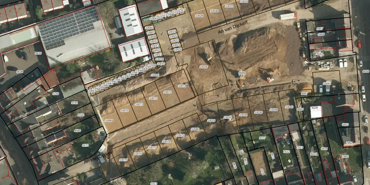 Gebruik de zoekbalk of klik op een perceel voor informatie over de adressen binnen dit perceel.