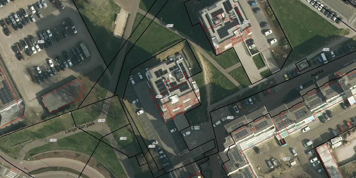 Het perceel waarop Aurora 247 staat heeft een oppervlakte van 2130 m². Dit is een zeer groot perceel. De perceeloppervlakte wordt geregistreerd door het Kadaster. Gedetailleerde informatie over de maten van dit perceel kunt u vinden in het rapport Kadastrale kaart met maatvoering van Aurora 247.