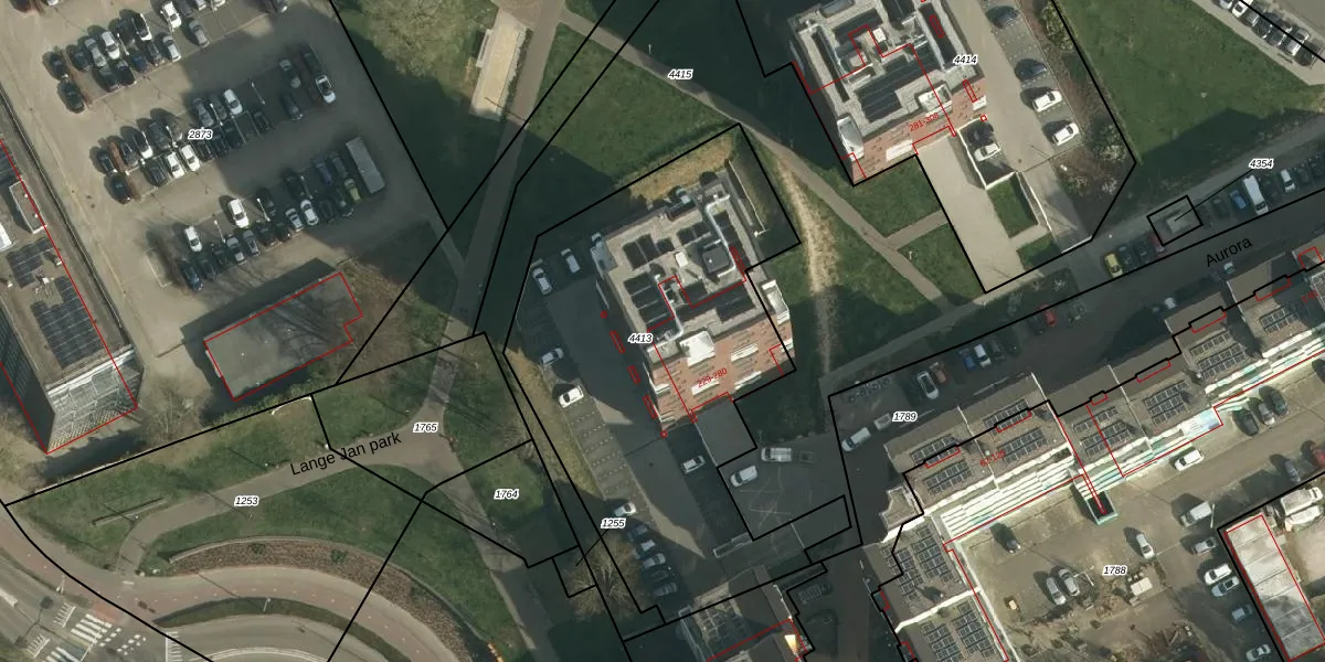 Het perceel waarop Aurora 258 staat heeft een oppervlakte van 2130 m². Dit is een zeer groot perceel. De perceeloppervlakte wordt geregistreerd door het Kadaster. Gedetailleerde informatie over de maten van dit perceel kunt u vinden in het rapport Kadastrale kaart met maatvoering van Aurora 258.