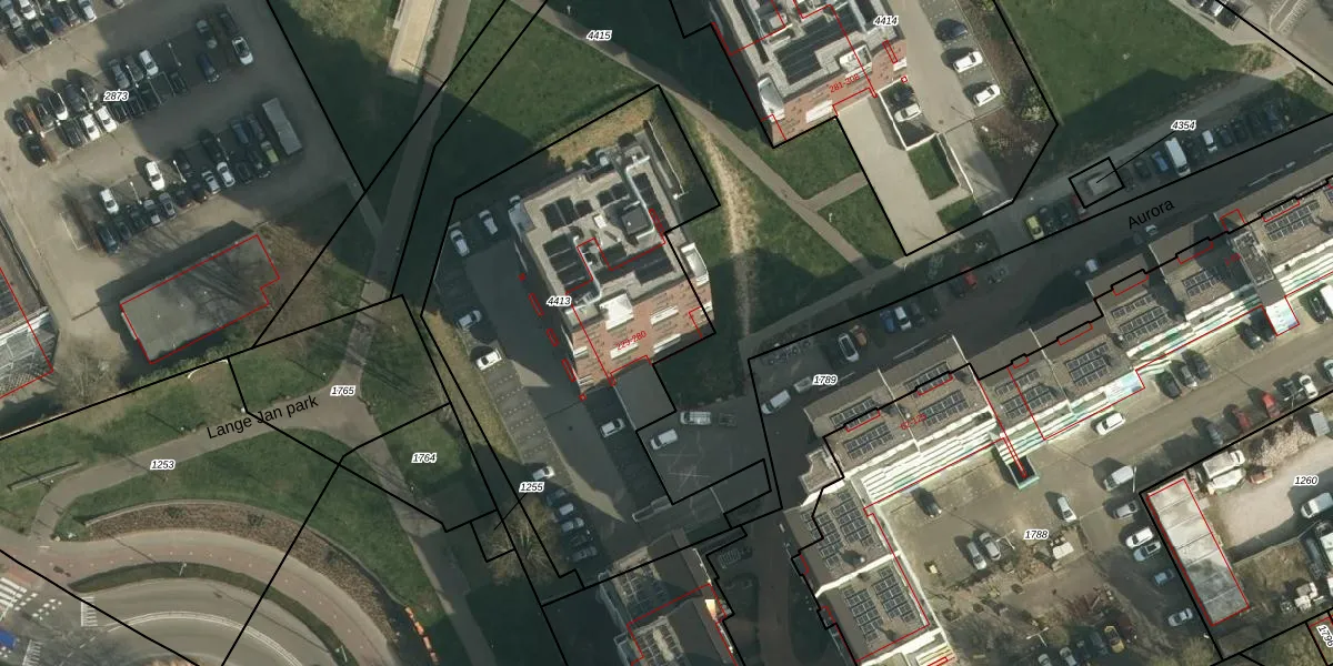 Het perceel waarop Aurora 268 staat heeft een oppervlakte van 2130 m². Dit is een zeer groot perceel. De perceeloppervlakte wordt geregistreerd door het Kadaster. Gedetailleerde informatie over de maten van dit perceel kunt u vinden in het rapport Kadastrale kaart met maatvoering van Aurora 268.