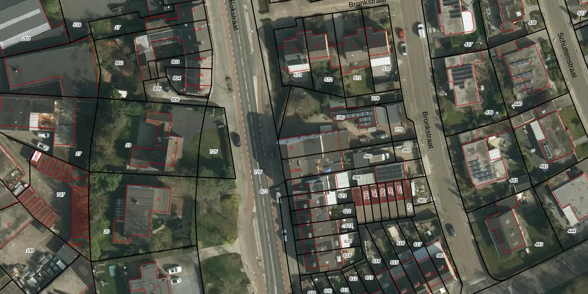 Het perceel waarop Bokstraat 38 staat heeft een oppervlakte van 655 m². Dit is een groot perceel. De perceeloppervlakte wordt geregistreerd door het Kadaster. Gedetailleerde informatie over de maten van dit perceel kunt u vinden in het rapport Kadastrale kaart met maatvoering van Bokstraat 38.