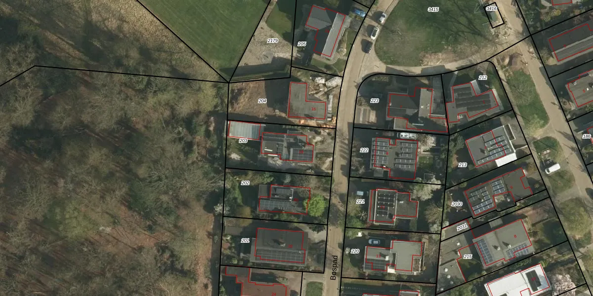 Bospad 18 is gelegen op kadastraal perceel HLN01M203. Deze kadastrale aanduiding is uniek en wordt gebruikt door het Kadaster om eigendomsrechten en andere zakelijke rechten vast te leggen. Het perceel maakt onderdeel uit van de kadastrale gemeente Heerlen.