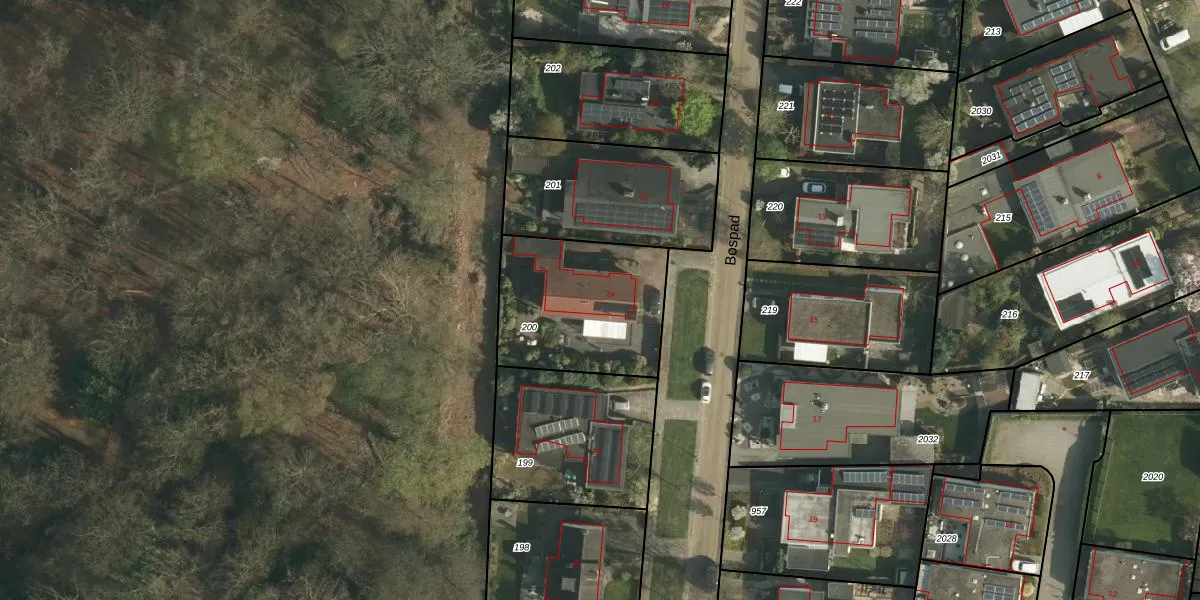 Het perceel waarop Bospad 24 staat heeft een oppervlakte van 603 m². Dit is een groot perceel. De perceeloppervlakte wordt geregistreerd door het Kadaster. Gedetailleerde informatie over de maten van dit perceel kunt u vinden in het rapport Kadastrale kaart met maatvoering van Bospad 24.