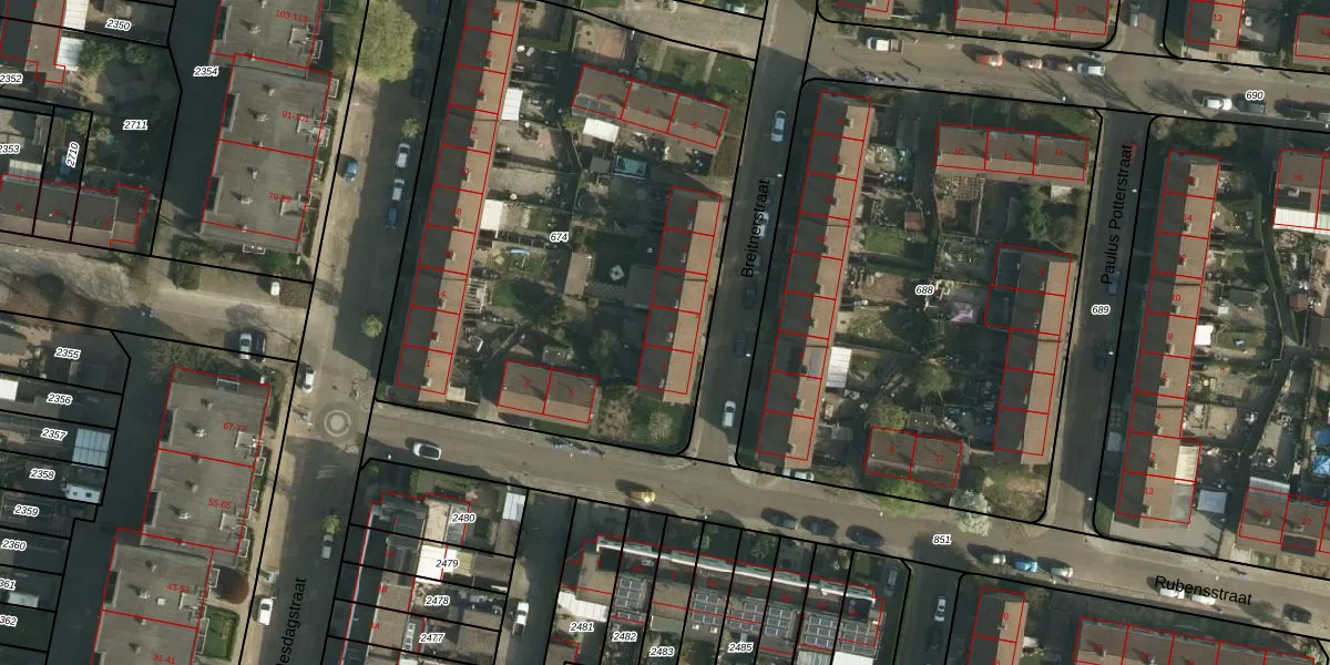 Het perceel waarop Breitnerstraat 3 staat heeft een oppervlakte van 2960 m². Dit is een zeer groot perceel. De perceeloppervlakte wordt geregistreerd door het Kadaster. Gedetailleerde informatie over de maten van dit perceel kunt u vinden in het rapport Kadastrale kaart met maatvoering van Breitnerstraat 3.