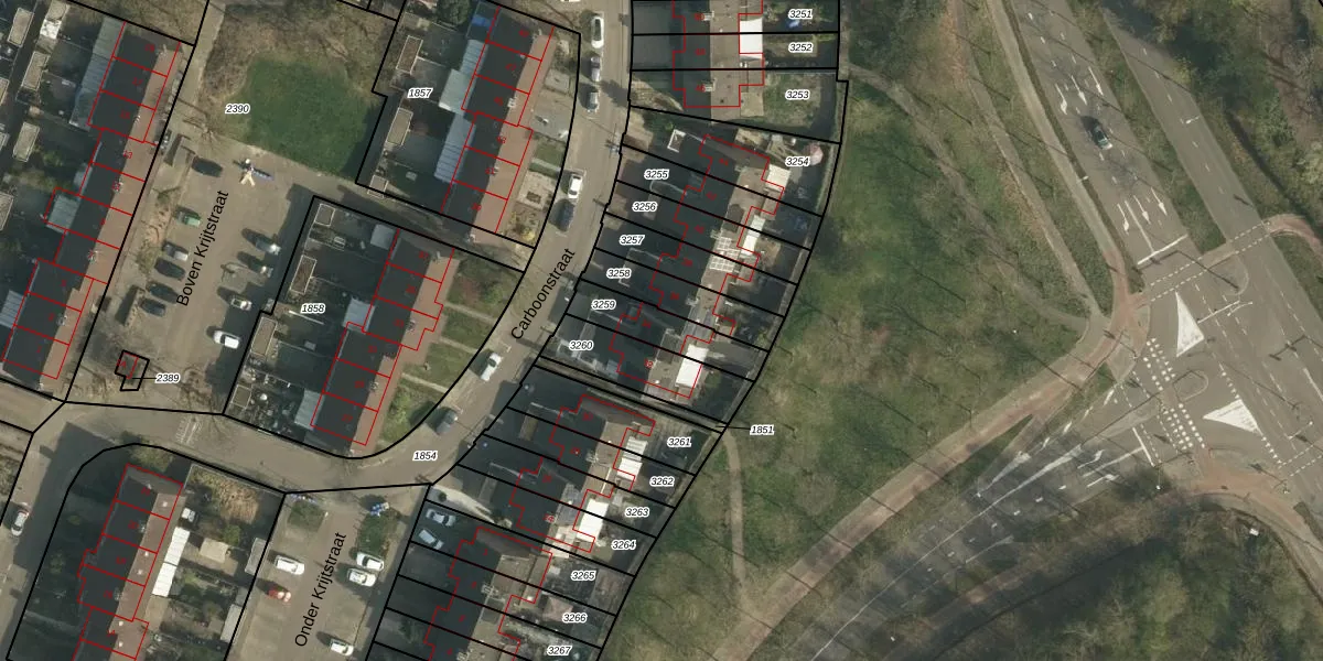 Carboonstraat 34 is gelegen op kadastraal perceel HLN01R3259. Deze kadastrale aanduiding is uniek en wordt gebruikt door het Kadaster om eigendomsrechten en andere zakelijke rechten vast te leggen. Het perceel maakt onderdeel uit van de kadastrale gemeente Heerlen.