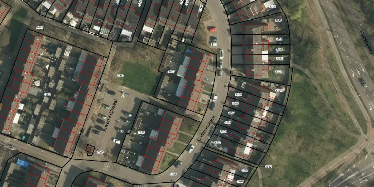 Het perceel waarop Carboonstraat 41 staat heeft een oppervlakte van 955 m². Dit is een groot perceel. De perceeloppervlakte wordt geregistreerd door het Kadaster. Gedetailleerde informatie over de maten van dit perceel kunt u vinden in het rapport Kadastrale kaart met maatvoering van Carboonstraat 41.