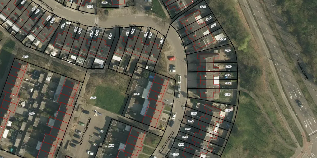 Het perceel waarop Carboonstraat 49 staat heeft een oppervlakte van 955 m². Dit is een groot perceel. De perceeloppervlakte wordt geregistreerd door het Kadaster. Gedetailleerde informatie over de maten van dit perceel kunt u vinden in het rapport Kadastrale kaart met maatvoering van Carboonstraat 49.
