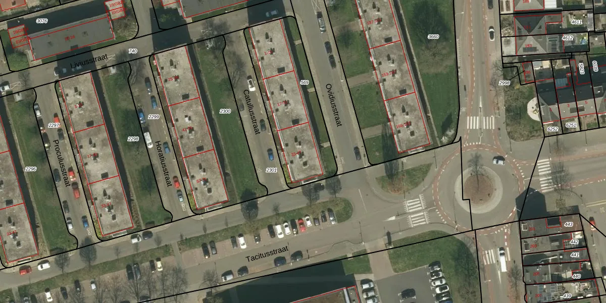 Het perceel waarop Catullusstraat 47 staat heeft een oppervlakte van 975 m². Dit is een groot perceel. De perceeloppervlakte wordt geregistreerd door het Kadaster. Gedetailleerde informatie over de maten van dit perceel kunt u vinden in het rapport Kadastrale kaart met maatvoering van Catullusstraat 47.